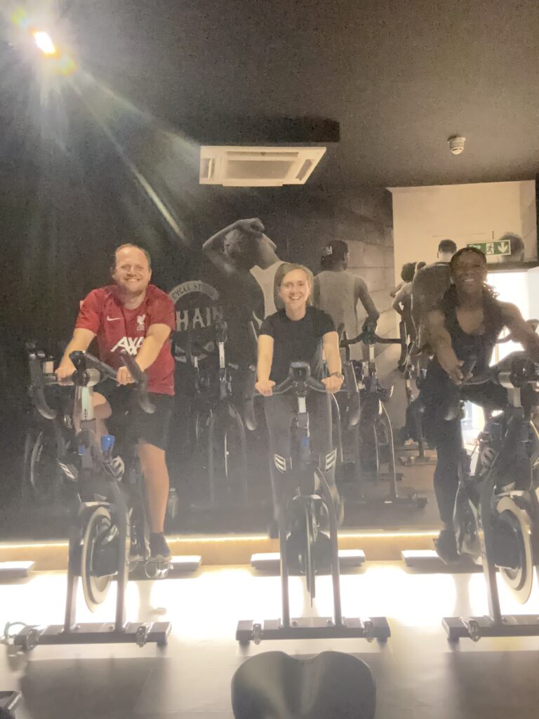 Here is a photo of trustee Dan, Jess founder of Dyspraxic Me and Phillie our spin instructor.